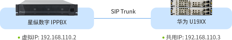 - 将星纵数字 IPPBXP 与华为 U19XX 通过 SIP Trunk 互联。